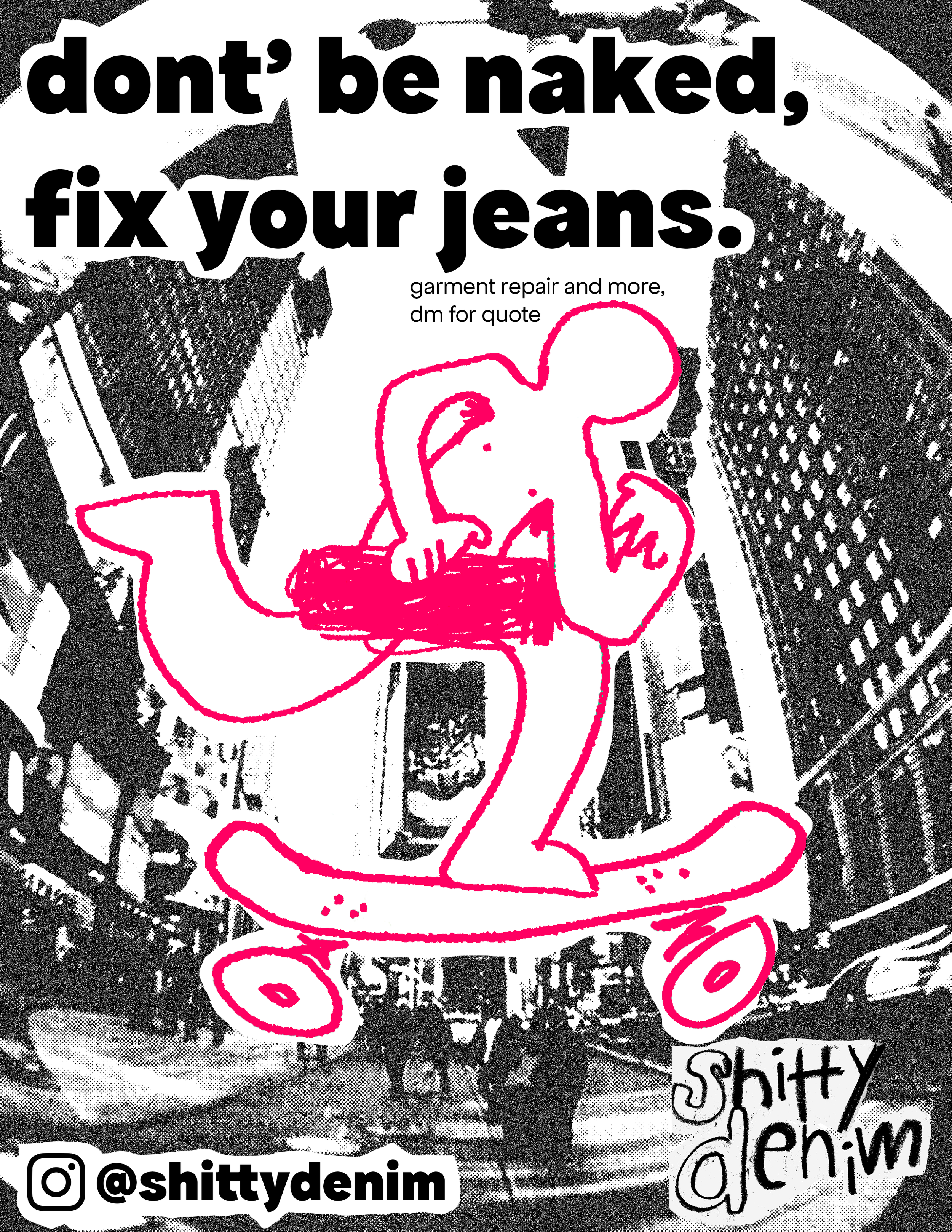 For garment repair services, please reach out via Instagram DM @shittydenim or email us directly.